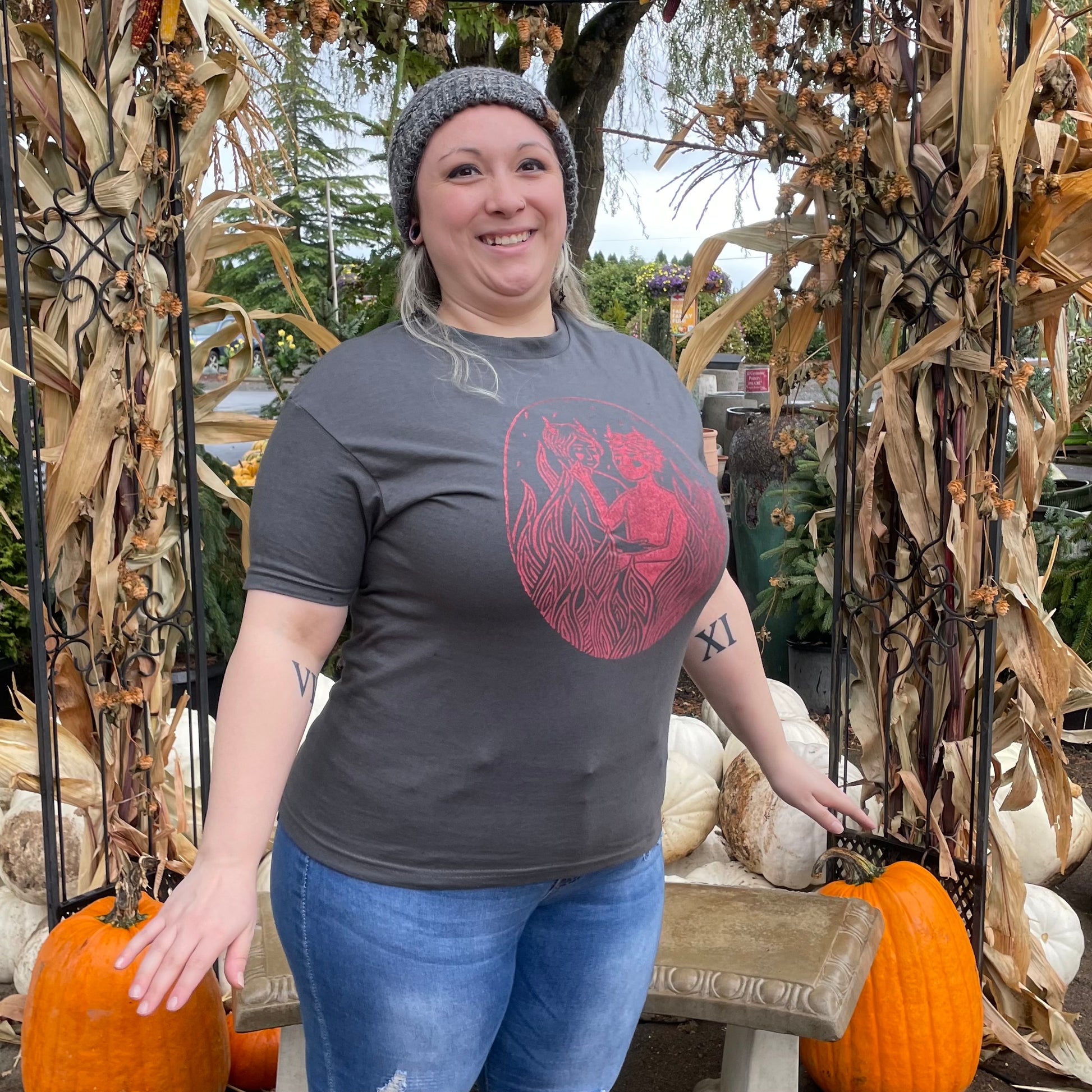 I thought this would be a fun design and it turned out super cute! I love drawing demons and these two demons in love are perfect for pride or to wear year round.