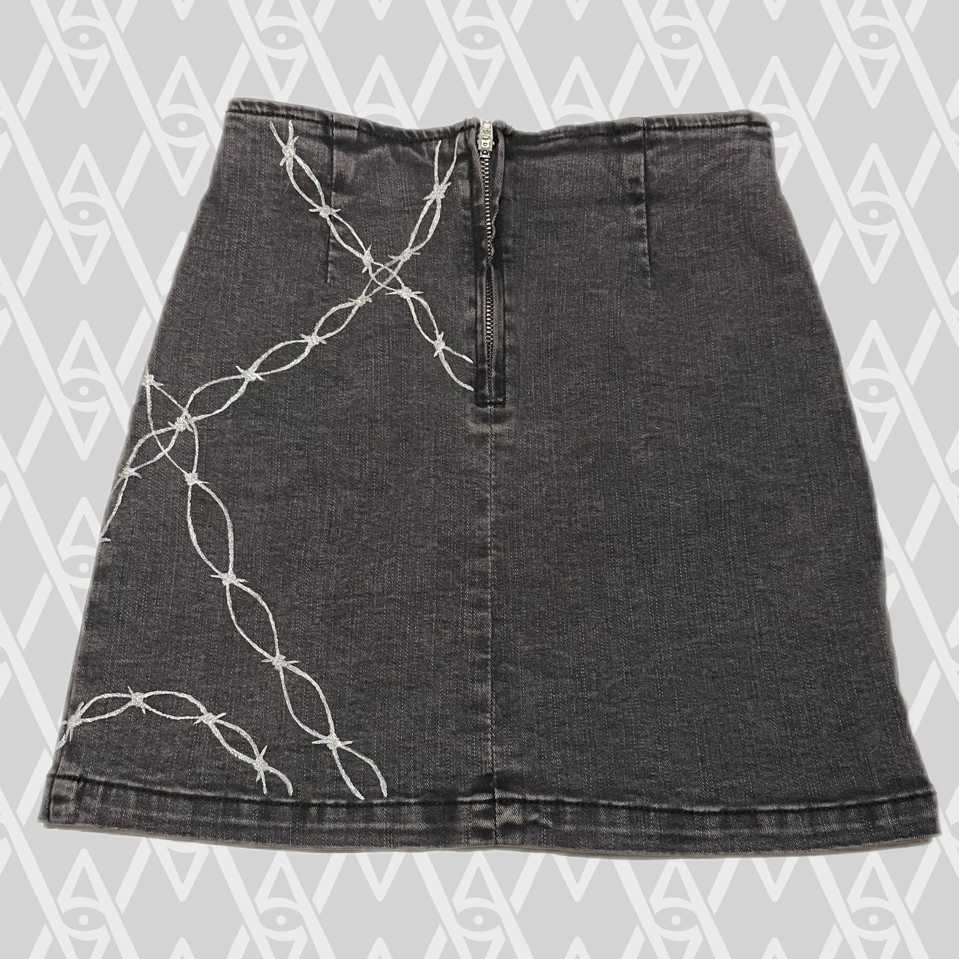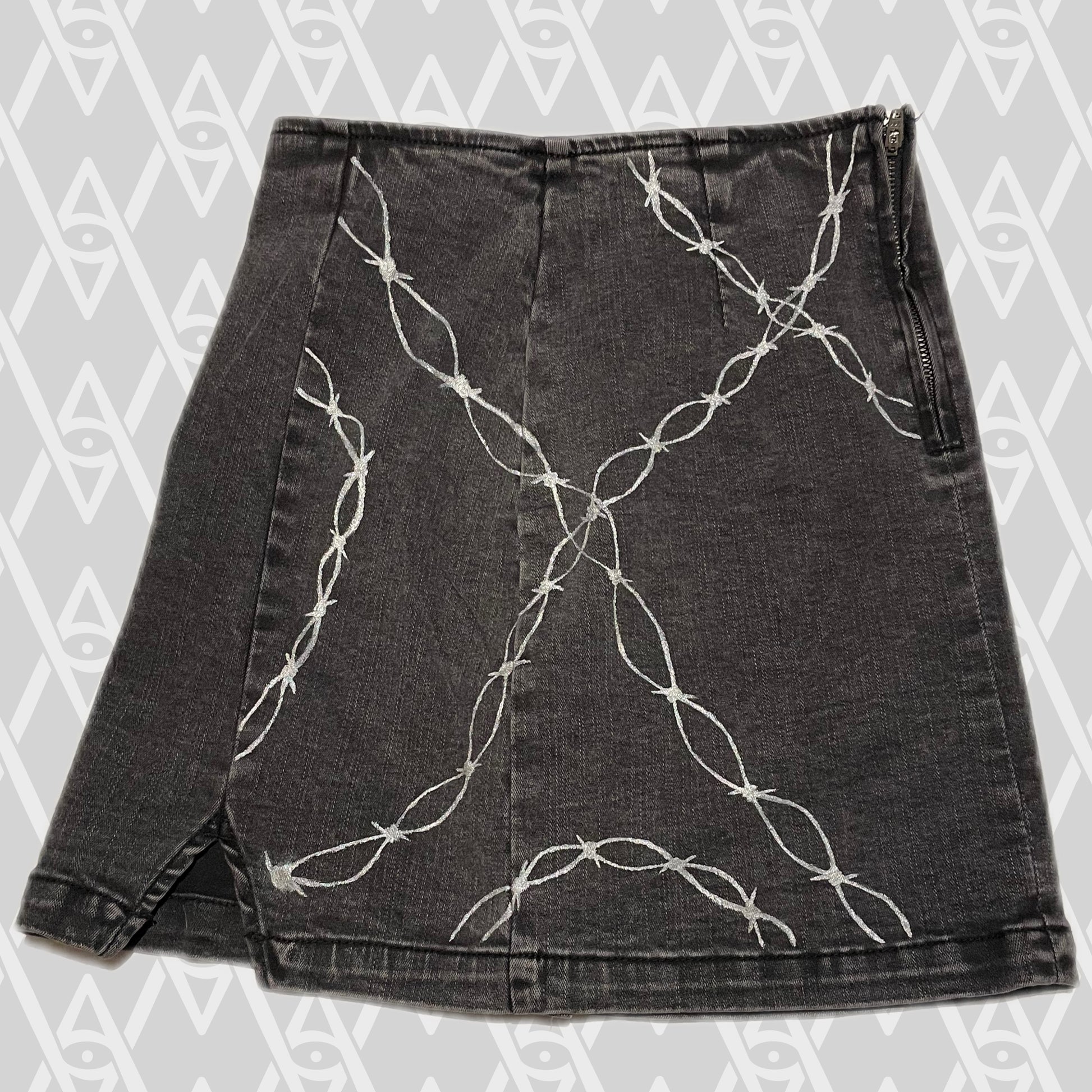 this design was made by Ari! The barbed wire was hand painted except for the woman who was screen printed.