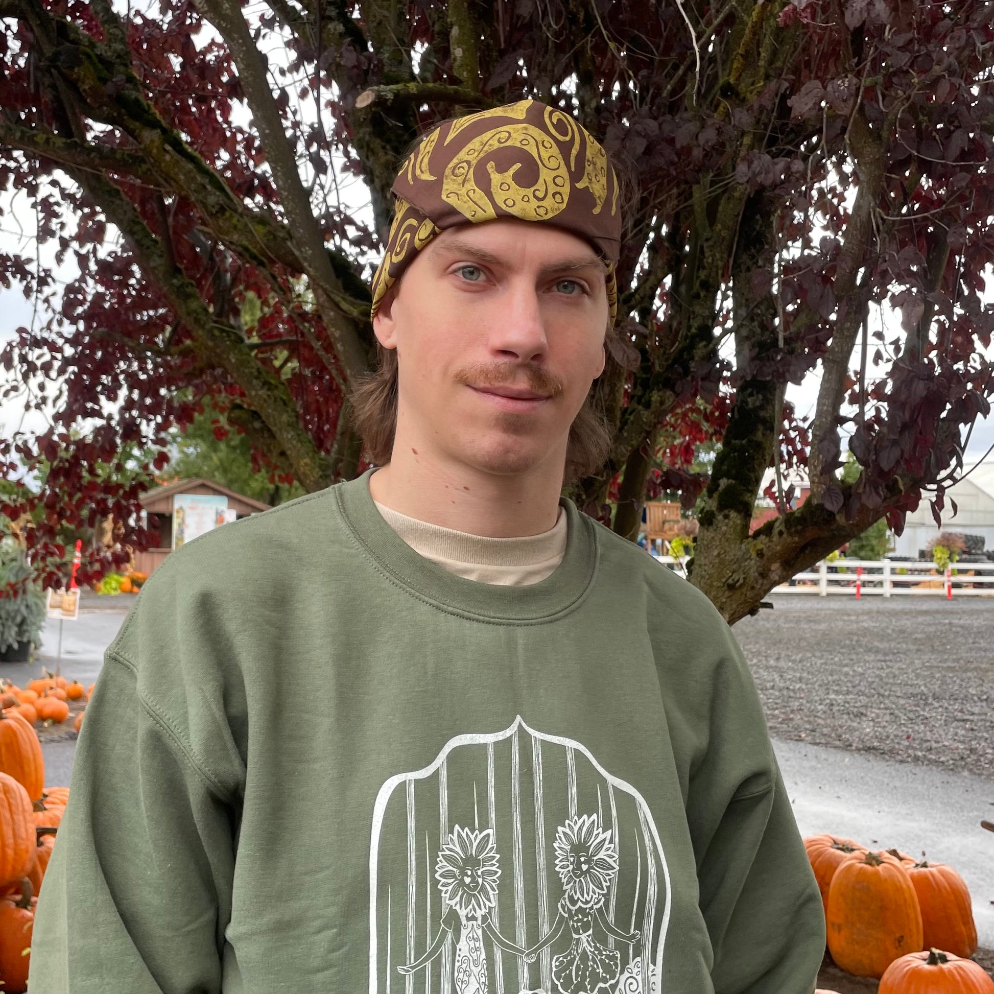 I wanted to create a cute fall design, and I was inspired while walking my dog, Dermutt. I have always loved slugs and came across a conclave of them one night and started drawing them a lot. My friend Max was talking to me about Gingko leaves as we passed by the trees and how they’re one of the only leaves that parts into two, a remnant of a time before. I also added in oak leaves as I see them often! I love summer and the sunshine it brings, but the transition from summer to fall is always so beautiful!