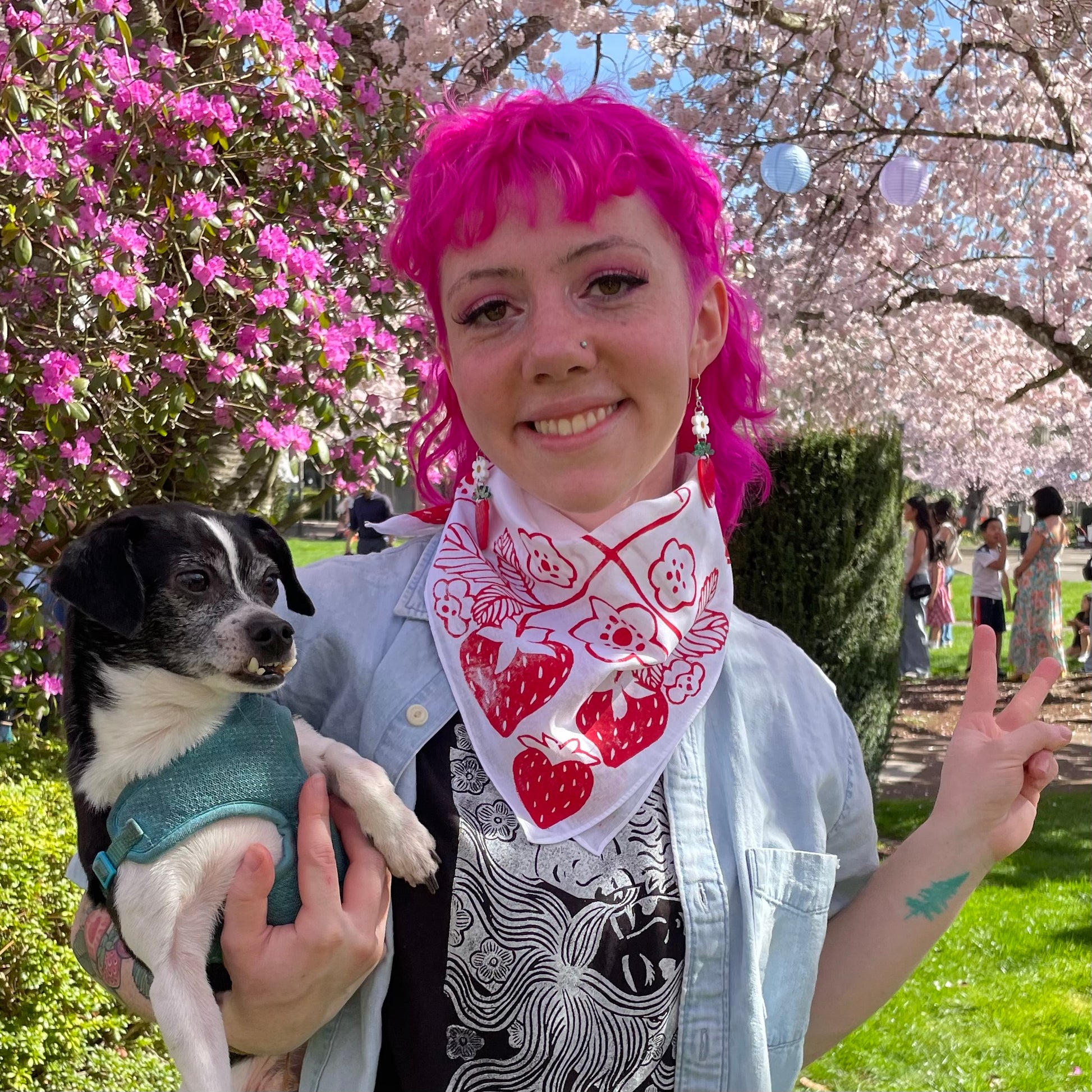 Nothing says spring and summer like strawberries! I grew up berry picking at U-pick farms here in Oregon with my family every summerl- it would always begin with a trip to pick more berries than we could ever eat. I really love this design and can’t wait to wear this bandana all summer long!
