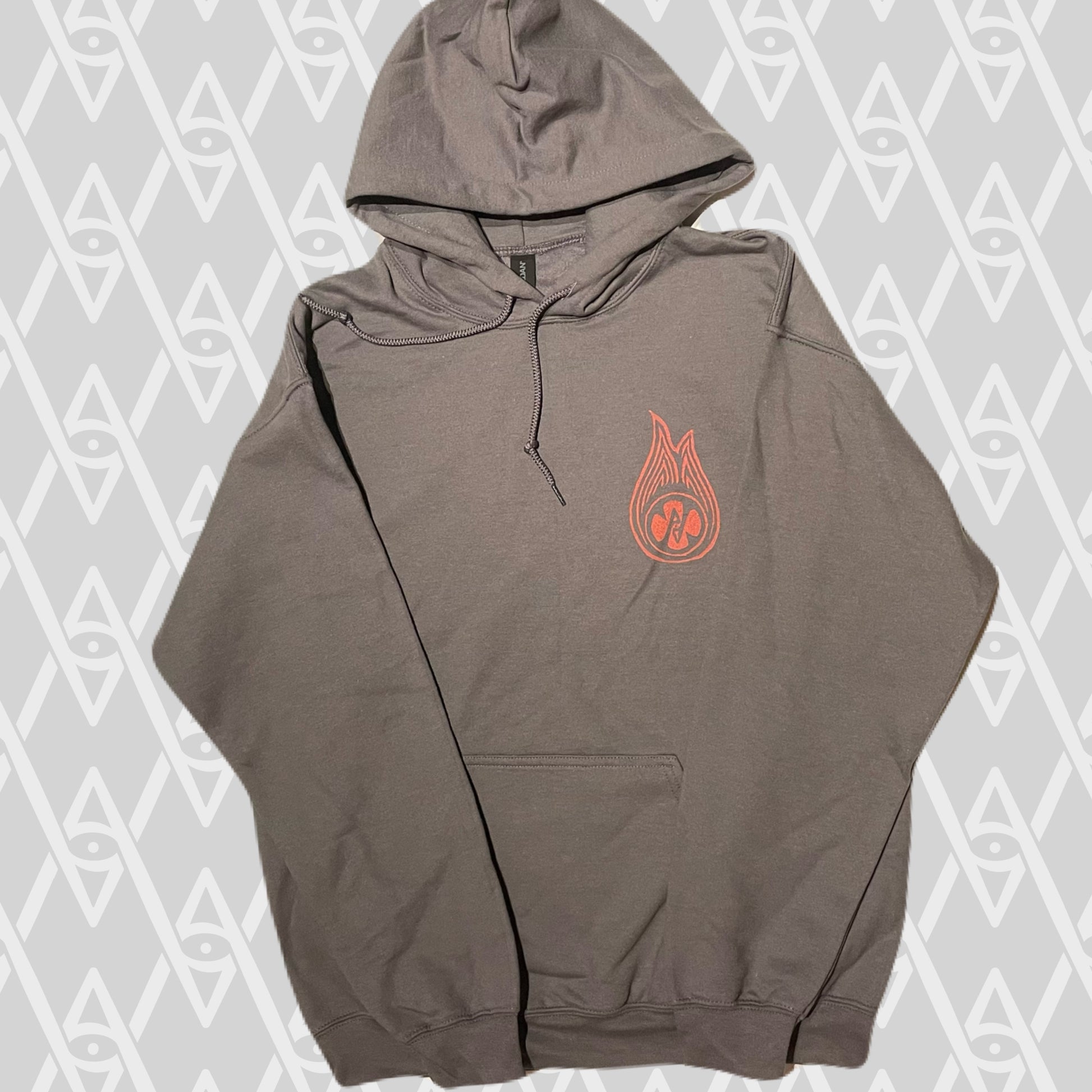 This design was created, hand carved, and hand printed by Ari on 50/50 cotton poly hooded sweaters.